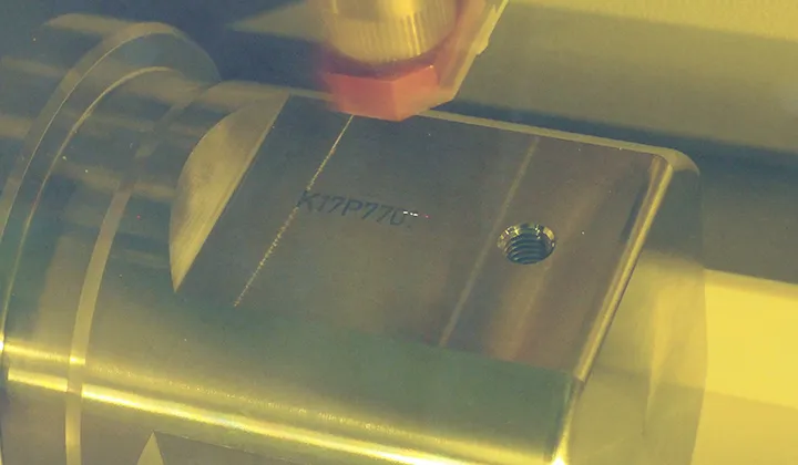 指定箇所へピンポイントにレーザ光を照射。小さな文字でも判別できる高品質なマーキングが可能です。