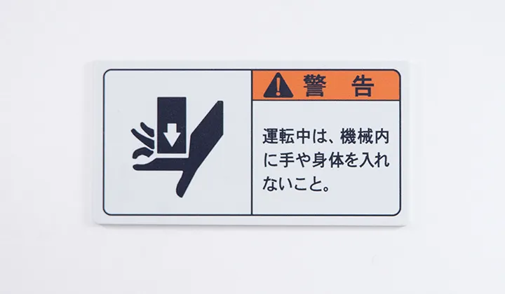 PL法に基づいた警告ラベルのオンデマンド印刷を10枚から製作しています。ステンレス・アルミ・アクリル・塩ビ・マグネットなど多くの材料に印刷が可能です。